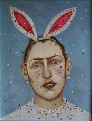 Une série de portraits, acrylique sur bois et strass, qui prétend révéler la mélancolie et la part d'ombre derrière l'exubérance et les signes extérieurs du divertissement et de l'amusement.